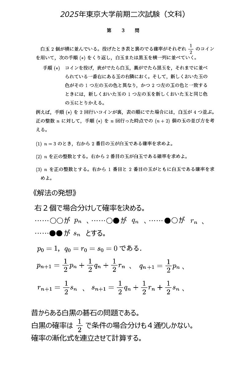 2025年東大前期二次試験(文科)